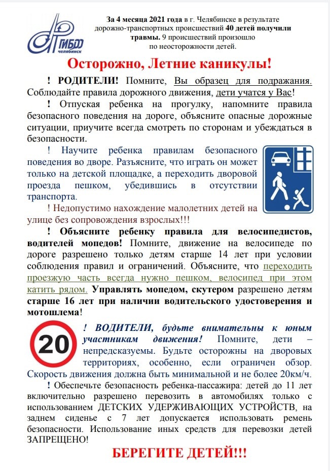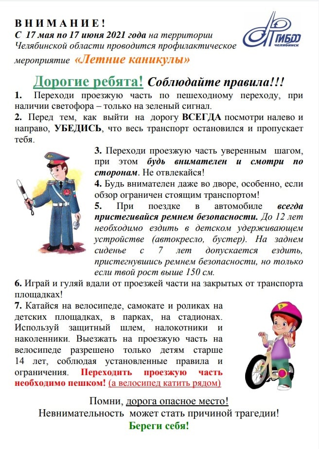 С 17 мая по 17 июня 2021 года на территории Челябинской области проводится профилактическое мероприятие "Летние каникулы"